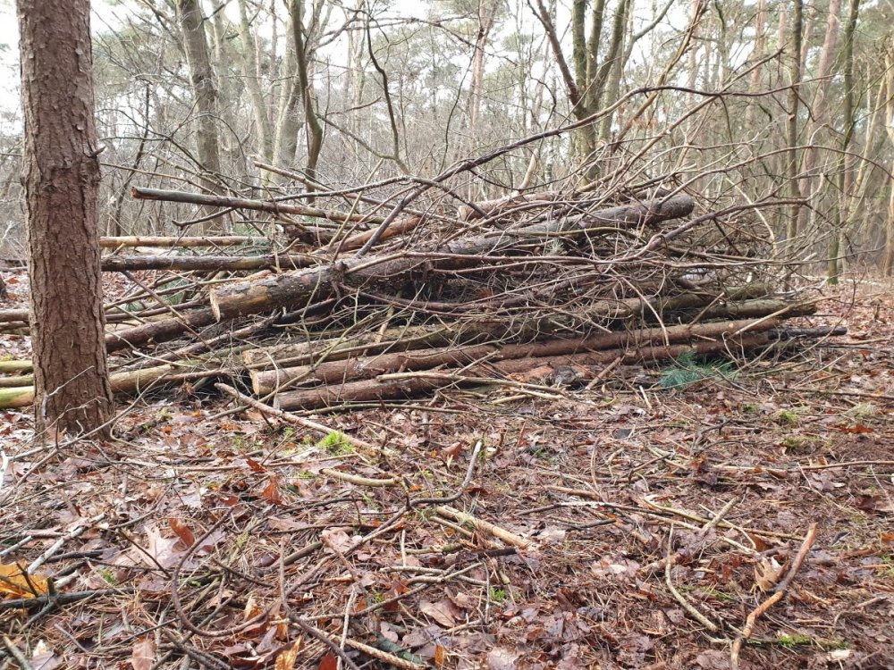 Weer bezig geweest, dit keer om de boel een beetje op te ruimen. Dit stuk van het bos ligt vol met dode takken maar ook stammen die half gevallen zijn en over elkaar heen liggen. Oftewel geen mooi stukje bos, er groeit ook niks meer en de bomen groeien ook niet omdat alles zo dicht op elkaar staat. In andere delen zie ik regelmatig een ree of kleinere diertjes maar hier nooit dus daar moet verandering in komen. Enkele jaren terug al begonnen met wat kap en ik zie nu al wat kleine groene bosjes opkomen samen met wat varens dus het bos wil erg graag. Dus help ik maar een klein handje Foto's zijn van al het hout wat ik uit een klein stukje heb getrokken. Gedeelte hiervan zal ik gebruiken voor het kamp en de rest ga ik mooie houtwallen van maken. Helaas geen before foto.1 punt