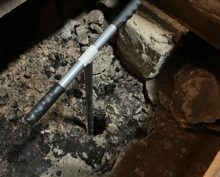 Grondwaterstanden in Beeld (grondwatertools.nl) Gat maken om te testen, en ik zie dat ik op 1,2 meter zeer vochtige grond omhoog haal en op het vaste zit (weerstand). Mijn zand is zeer zacht en kruimelig, dus bij uitgraving weet ik dat de boel heel snel zal gaan verschuiven. Niet prettig en gewenst, maar daarom testen we ook om inzicht te krijgen. Hoe diep de stiep zit, dat weet ik niet en hou er al rekening mee dat ik de vloer moet opkrikken en nieuwe stiepen moet zetten. Deze kosten zijn laag en wanneer je vloer erboven niet belast is zou je dit met een gemiddelde autokrik (Hydraulische handpers) al kunnen doen (uitgaande van niet al te grote oppervlakte en houten vloer). Een kleine pers kun je aanschaffen voor een 14 euro, maar zelfs een simpele autokrik kan al werken als er geen extremiteiten zijn. Laat mij heel duidelijk zijn dat ik niet praat over het uitgraven naar de fundering toe en draagmuren ondersteunen! Nieuwe stiepen kunnen vrijwel gratis met stoeptegels en wat blokjes hardhout, bovenop controleer je gewoon met een knikker voor het gemak om te kijken waar deze heen gaat rollen. Een beetje beweging kan geen kwaad, maar voor details zou men het moeten opzoeken en baseren op de draagbalken. In mijn geval sta ik vrij en heb al nieuwe draagbalken liggen om aanpassingen te doen. Uitleg over de berekeningen geef ik niet, omwille van het feit dat er vele factoren zijn en geen verantwoording neem voor een ander wat verantwoord is. Domweg een schets voor de lol: : Edit: Voor morgen als eerste een gat graven en een buis plaatsen, ik moet grondwater afpompen en kan gebruik maken van de 32mm afvoer. Mijn buis is volgens mij diagonaal 40cm die ik nog heb liggen. Het boorgat heeft zich inmiddels al laten vullen met water. Mijn huidige stiep gaat naar het vaste op 1,2 meter.