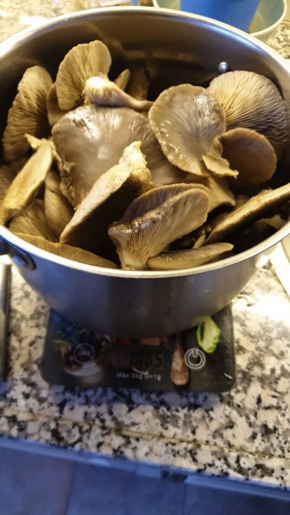 Net toevallig de laatste stammetjes neergezet, die zijn geënt met shi take. De rest met oesterzwammen, daar heb ik al een oogst van gehad van ruim twee kilo en had nog niet alles geplukt toen. Die stammen waren deze zomer geent.